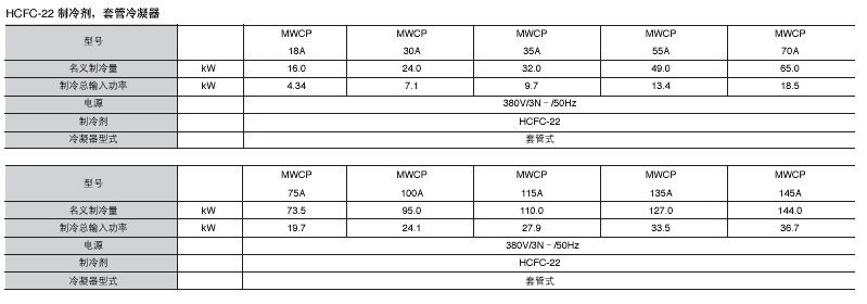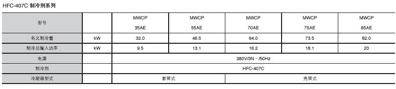 制冷劑:HCFC-22 HFC-407C