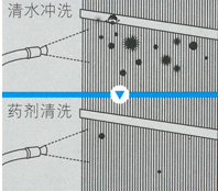 使用的專業(yè)藥劑為何分為"清洗劑"和"中和劑"? 因?yàn)槿ノ哿?qiáng)的清洗劑往往對(duì)翅片有較強(qiáng)的腐蝕性,而溫和型藥劑的清潔能力較弱。 惠馳使用的專業(yè)清洗劑保證了強(qiáng)有力的去污能力,而專業(yè)中和劑能夠中和清洗劑的腐蝕性,保證翅片不被腐蝕,做到去污,耐腐兩全其美。