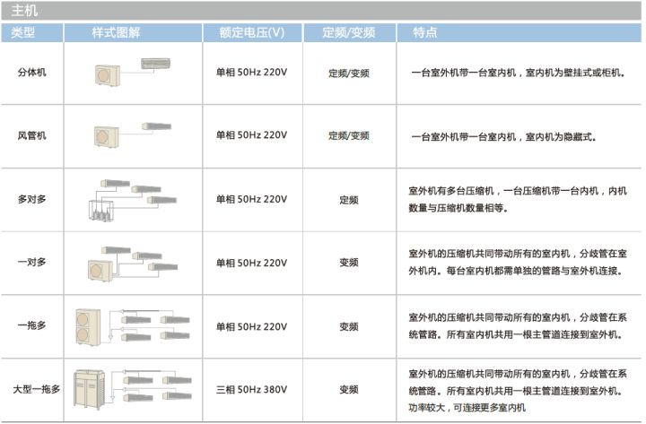 室外機通過冷媒管與多臺室內機連接,每個房間的內機均直接與空氣換熱。