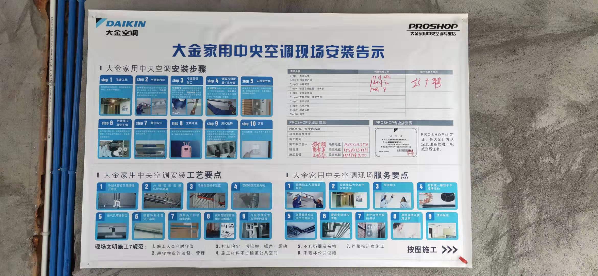 (3)貼上標(biāo)識(shí)貼:留有公司客服人員電話,萬一裝修公司工人在施工中有問題,需要聯(lián)系中央空調(diào)施工,可以直接方便聯(lián)系。