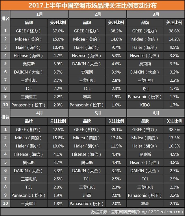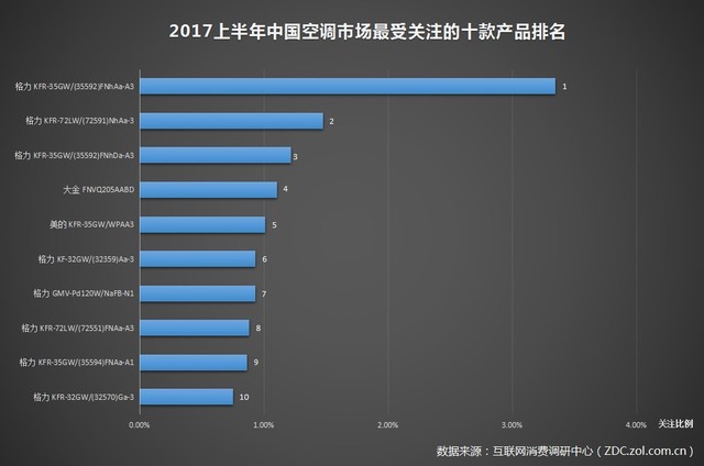 2017上半年我國空調市場最受注重的十款產品排名,在這10款空調單品中,格力居然占有了8款之多!擠進前十的空調單品還有來自大金FNVQ205AABD中央空調和美的KFR-35GW/WPAA3變頻空調。中央空調越來越得到寬廣消費者的喜歡,此次上榜的大金5匹中央空調,盡管價格不菲,可是卻具有更好的舒適度和穩定性,特別適用于大面積戶型的消費者。